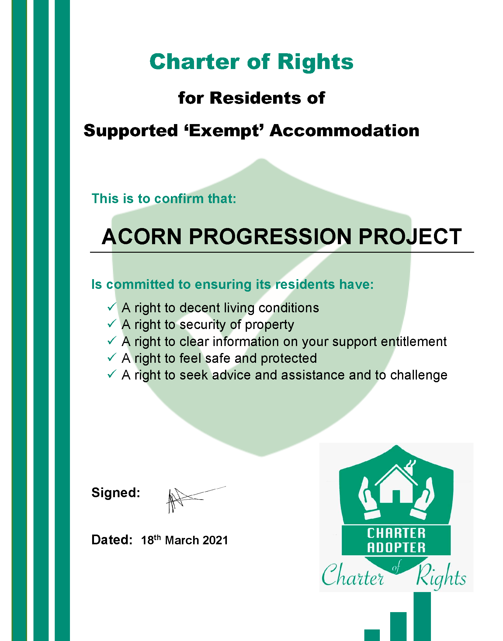 Acorn Progression Project are proud to be one of the first organisations to sign up to the pledge.